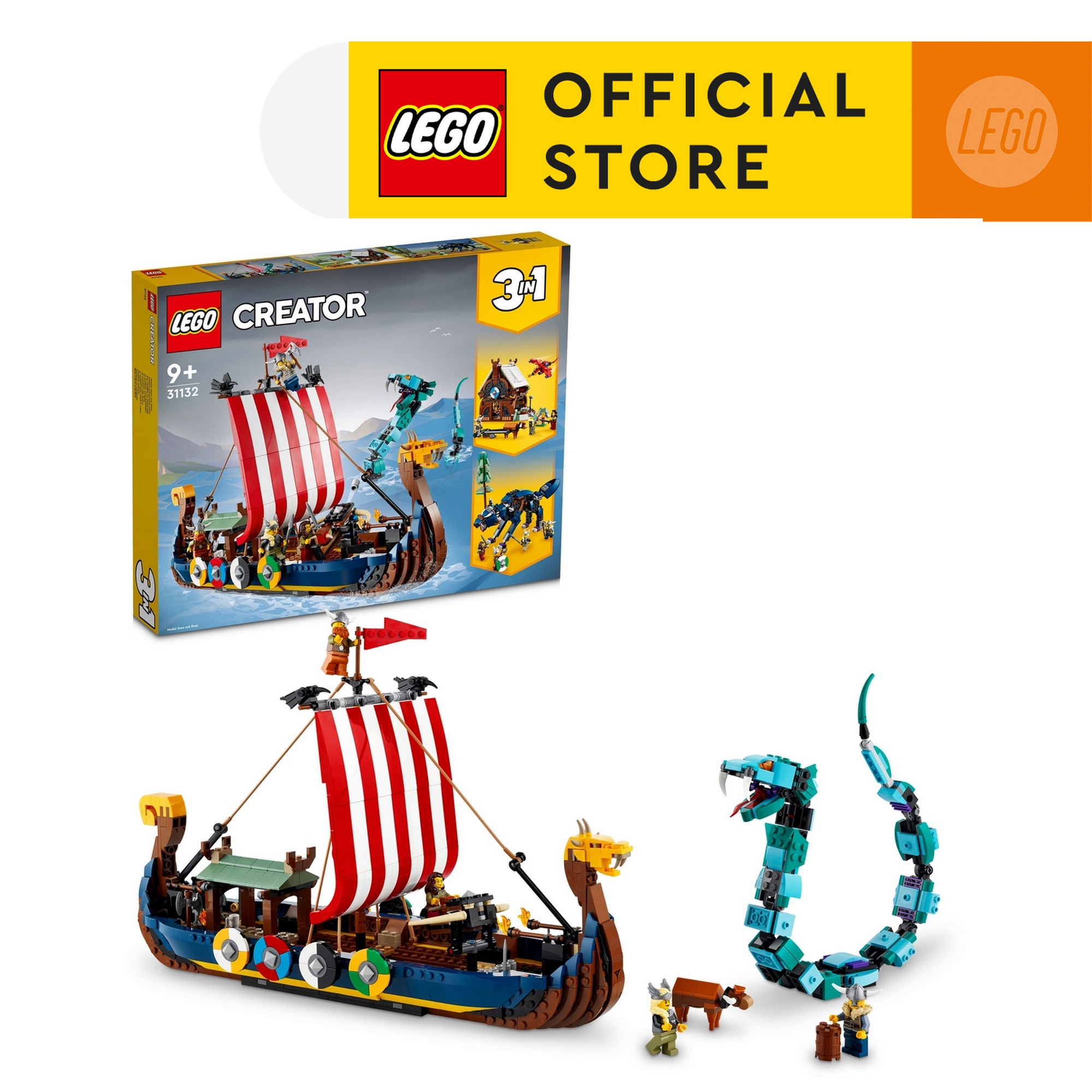 LEGO Creator 3in1 Viking Ship and the Midgard Serpent 31132 Building Kit (1,192 Pieces) Building Blocks For Kids Construction Toys Kids Toys Construction Sets Animal Toys