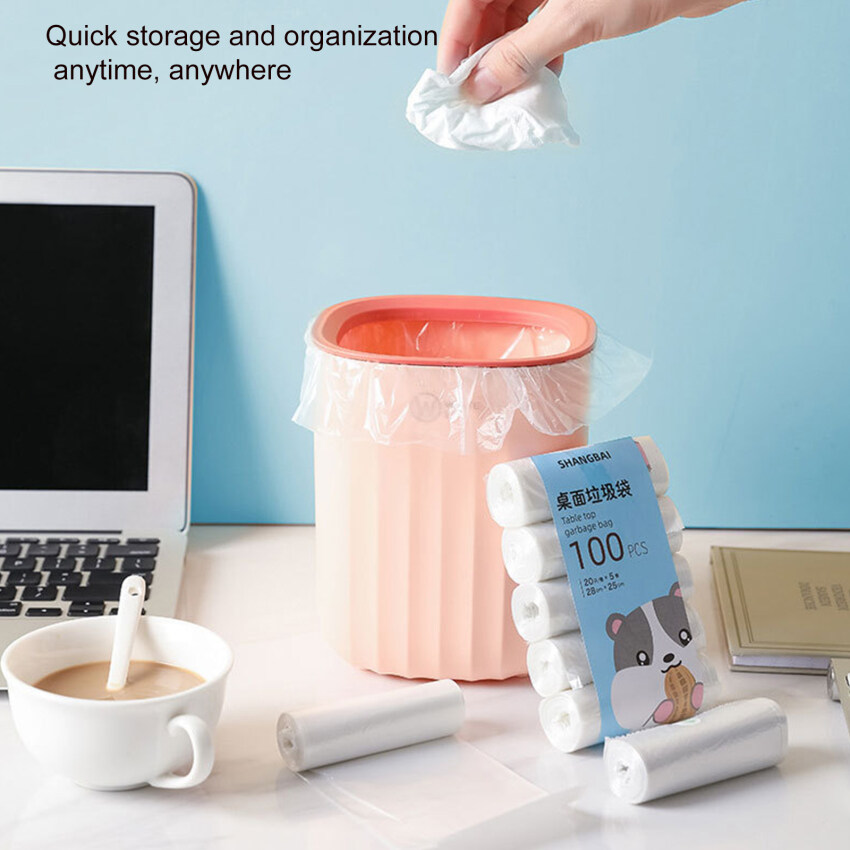 【Ready Stock】100pcs Small Trash Bags 5Rolls Mini Garbage Bag Household Thickened Small Desktop Garbage Can Garbage Bags Disposable Trash Bags Kitchen Tools